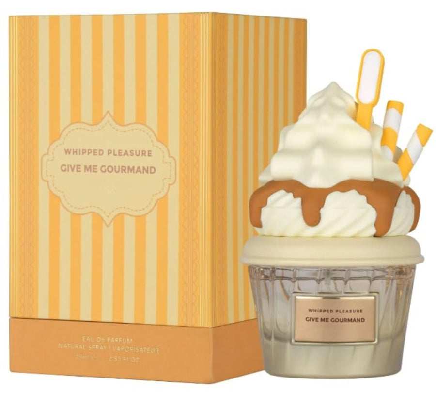 Fragrance Profile: The fragrance profile of Whipped Pleasure Give Me Gourmand is a luxurious Eau de Parfum that opens with indulgent caramel delights, flows into a heart of creamy milk and elegant jasmine, and settles into a warm base of tonka bean, benzoin, musk, and ambrofix for a long-lasting gourmand finish.